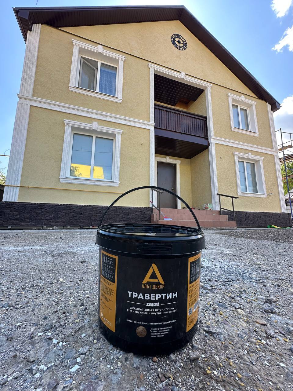 Штукатурка высокопрочная атмосферостойкая водно-акриловая декоративно - отделочная для наружных и внутренних работ с эффектом камня травертин.